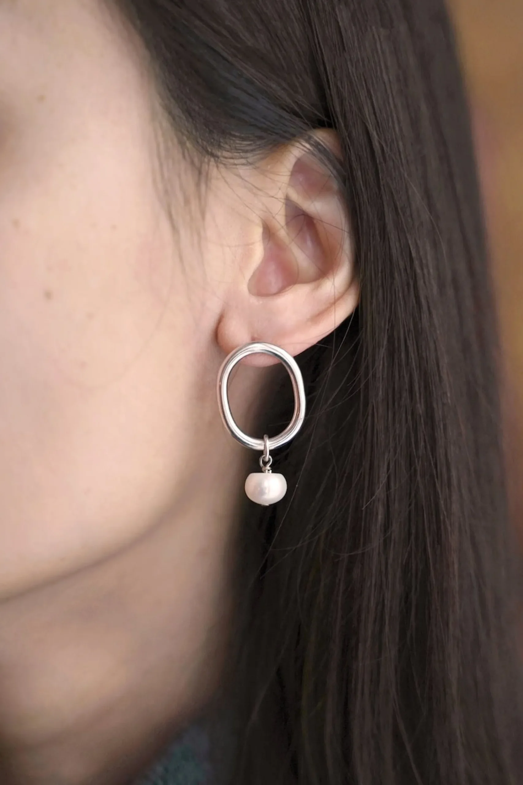 Boucles D’Oreilles Pia Perle En Laiton Plaqué À L’Argent, Ornée D’Une Perle Naturelle
