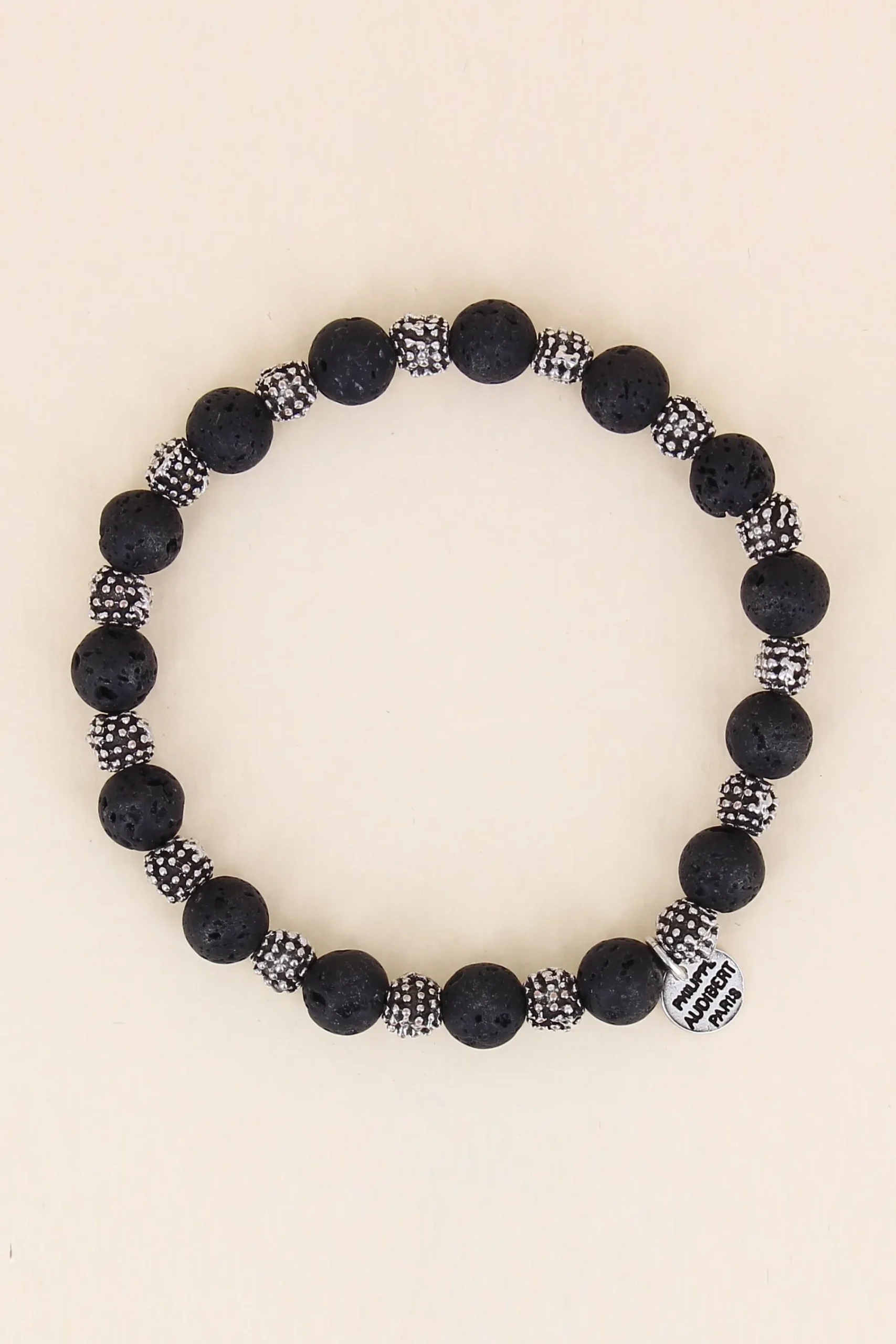 Bracelet Élastique Homme Myly Perles De Lave En Étain Plaqué Argent Et À Perles De Lave Noires
