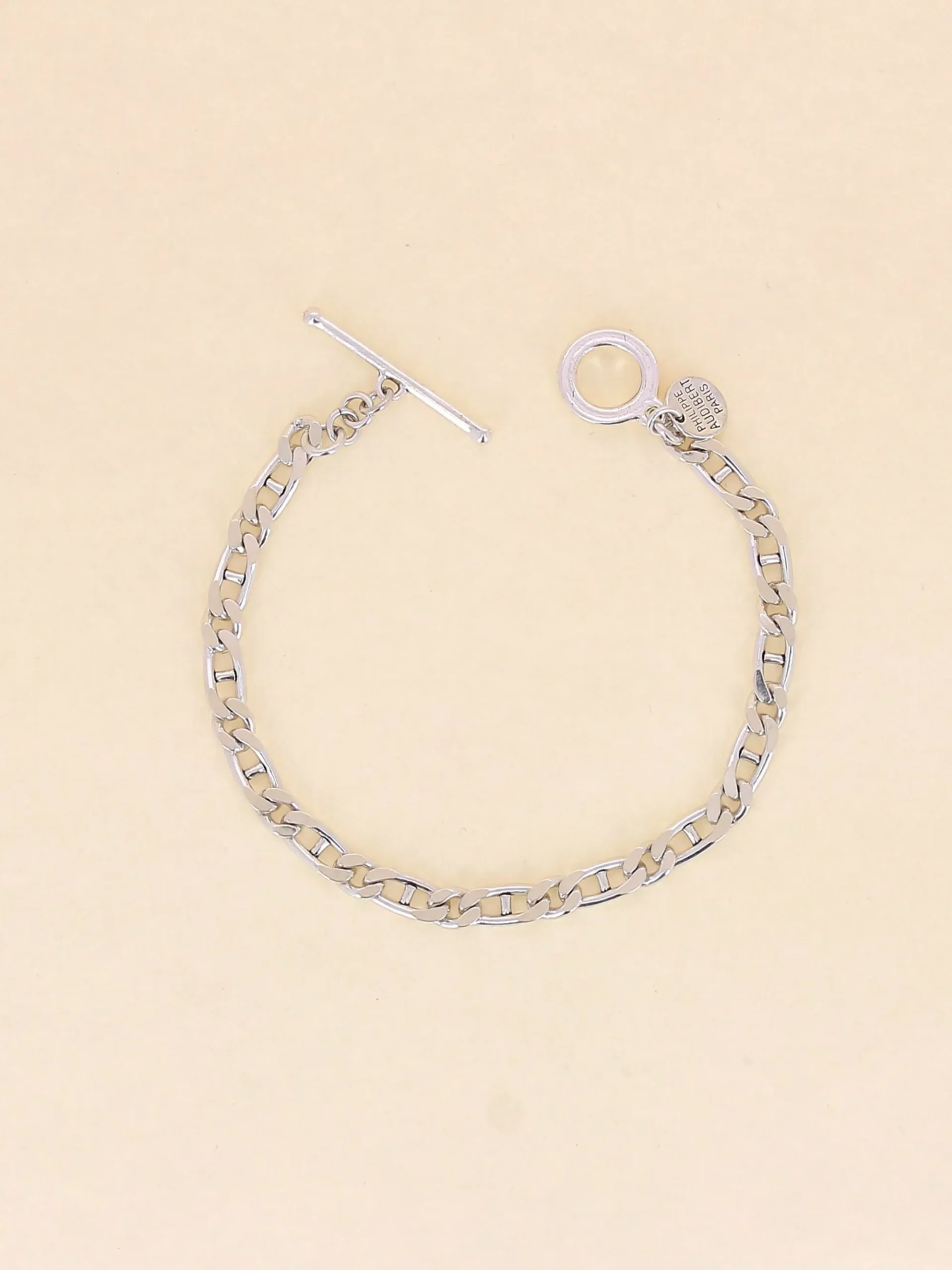 Bracelet Homme Chaine Gourmette Silias En Laiton Plaqué À L’Argent.