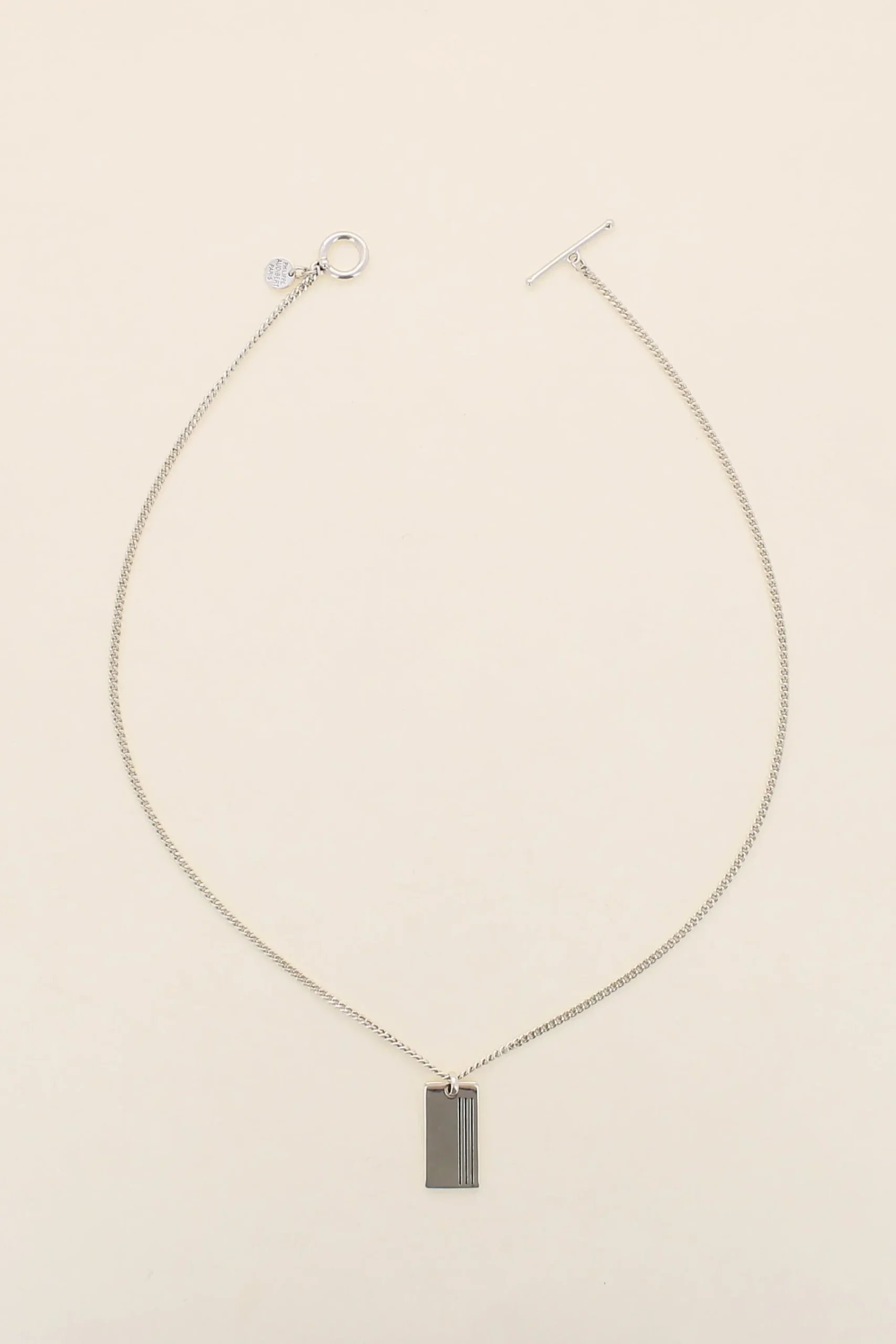 Collier Homme Plaque, Chaine Fine Avec Pendentif Rectangle Lisse En Laiton Plaqué À L’Argent