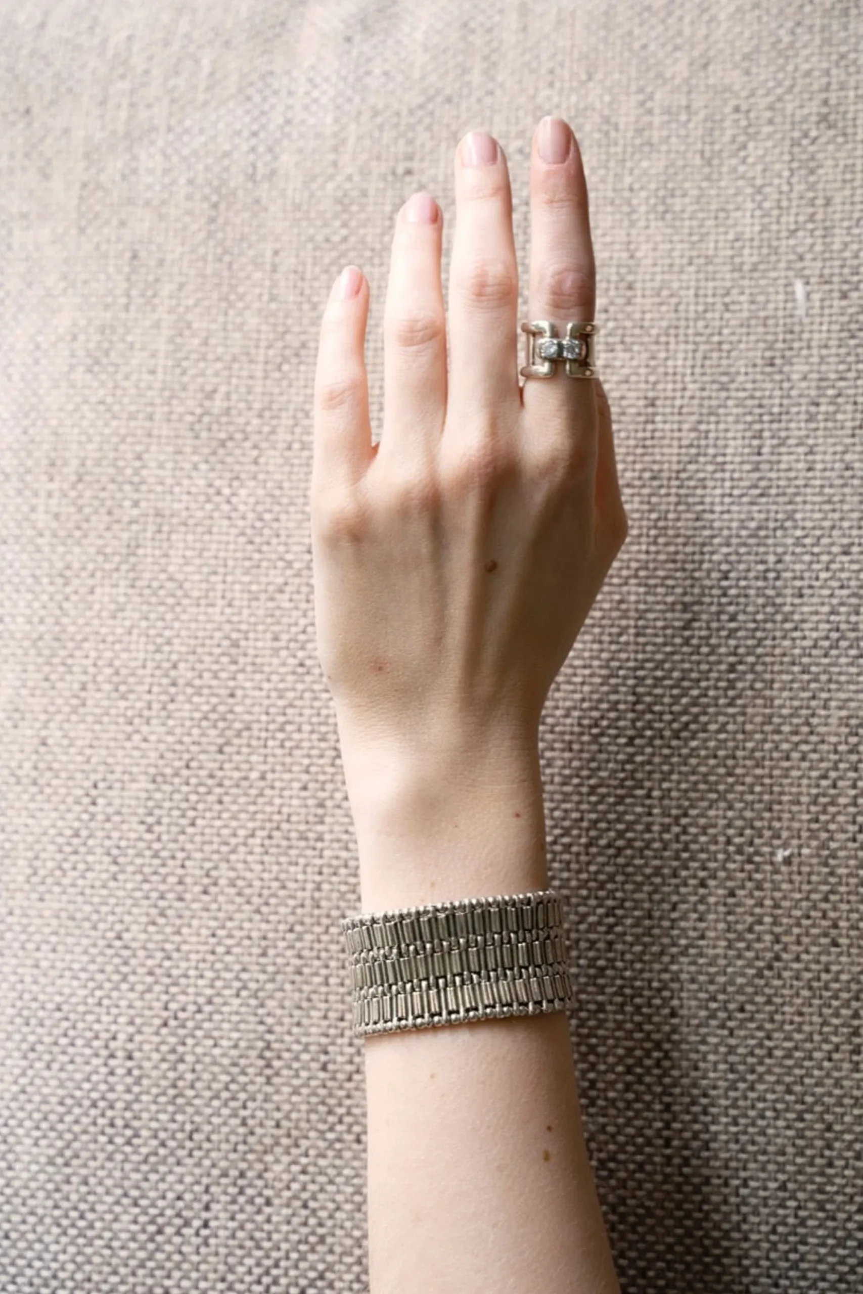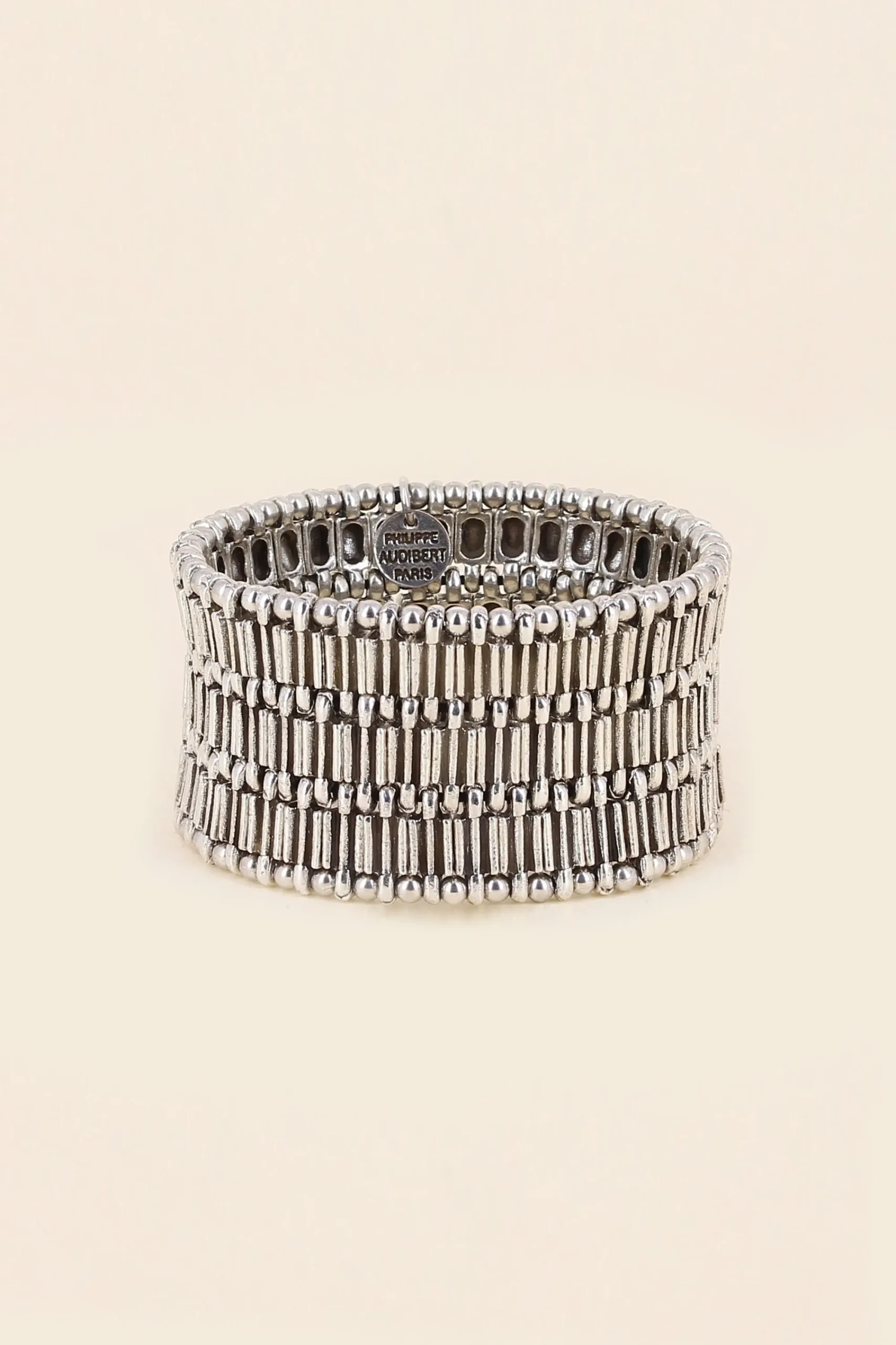 Manchette Élastique Trenty Rayée, En Étain Plaqué Argent