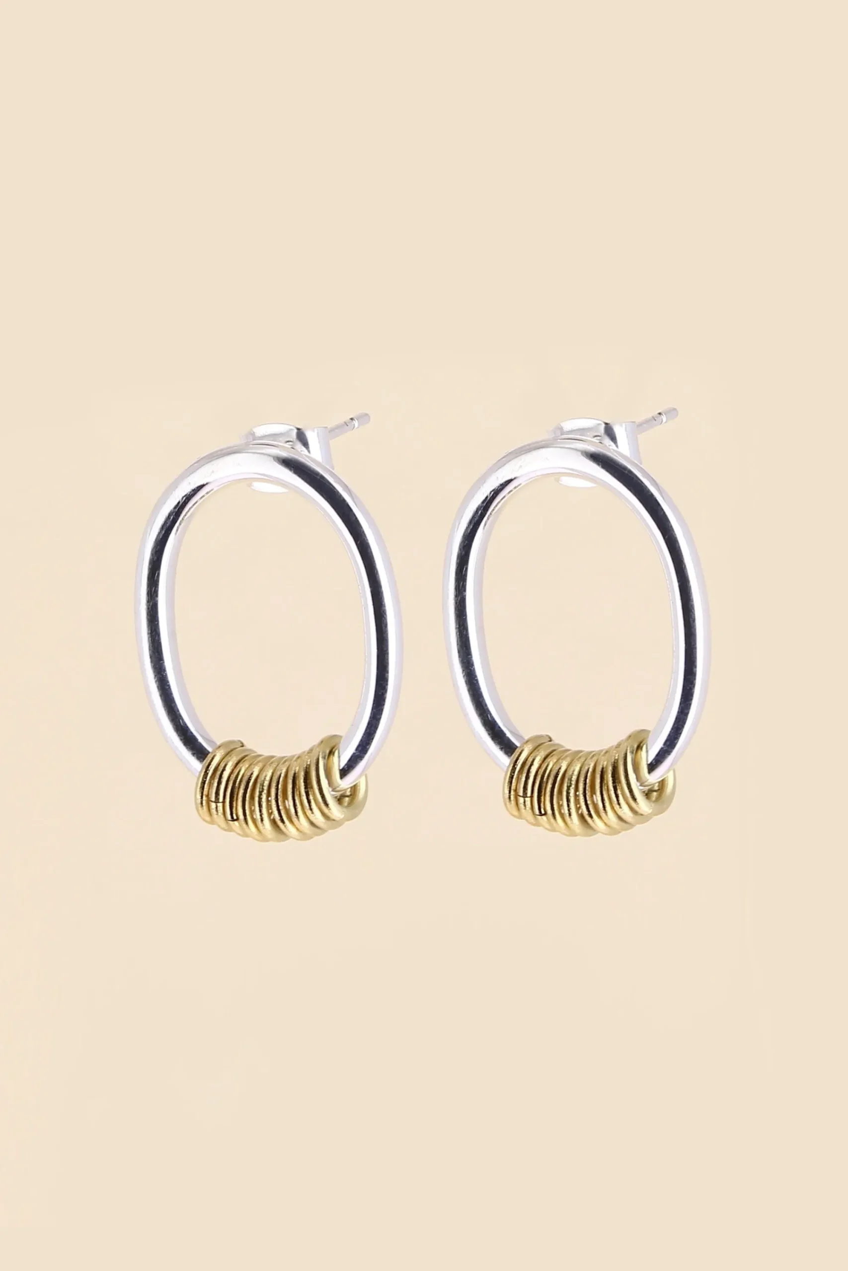 Boucles D’Oreilles Jenny Avec Petits Anneaux Bicolores, En Laiton Plaqué À L’Argent Et Doré À L’Or Fin 24 Carats
