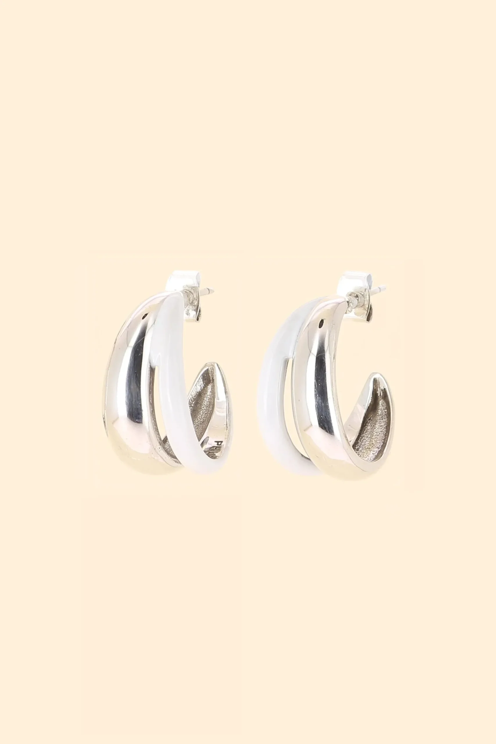Boucles D’Oreilles Kyler Petites Créoles En Laiton Plaqué À L’Argent, Bombée, Ajourée Et Émaillée