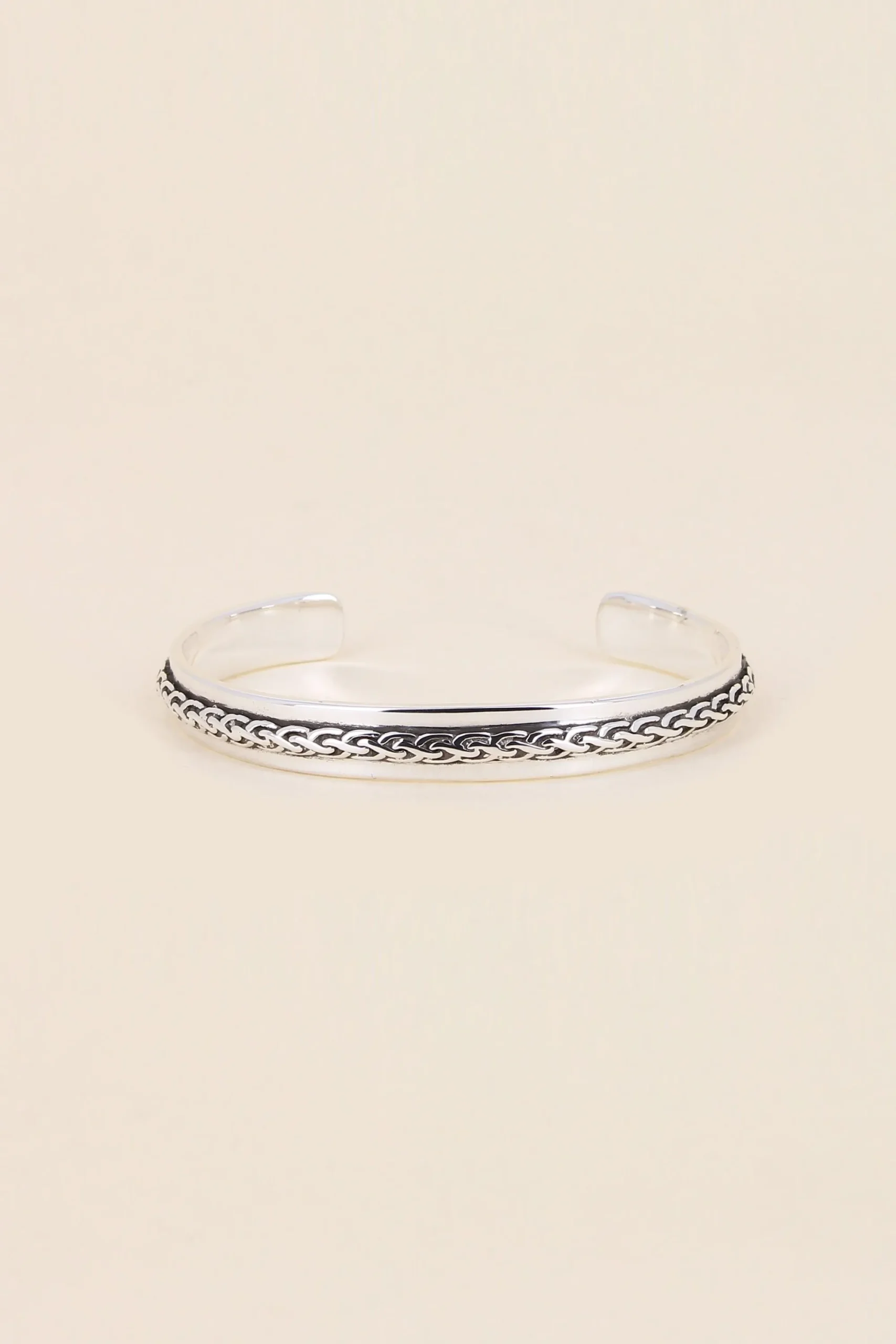 Bracelet Chaine Rigide Homme Nicky En Laiton Plaqué Argent