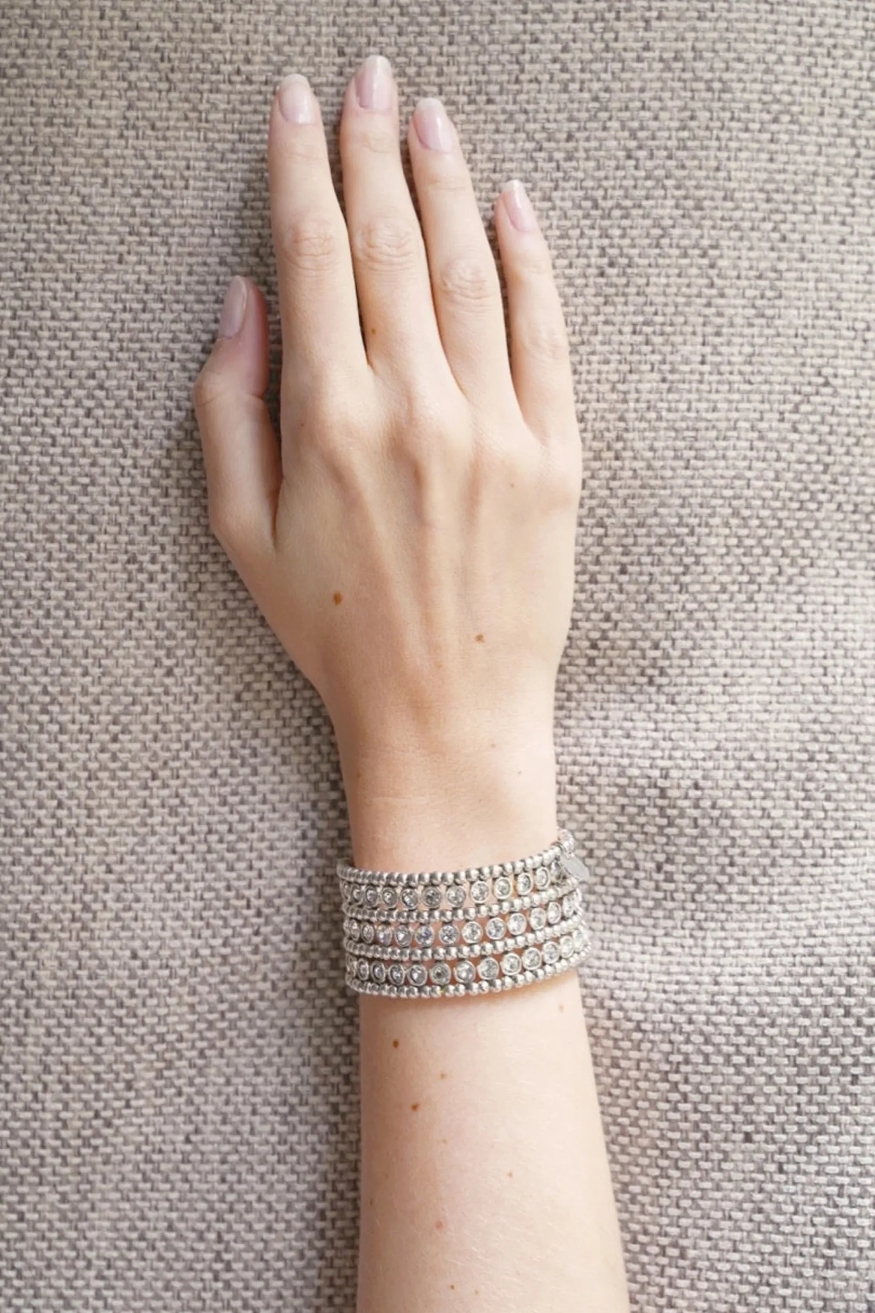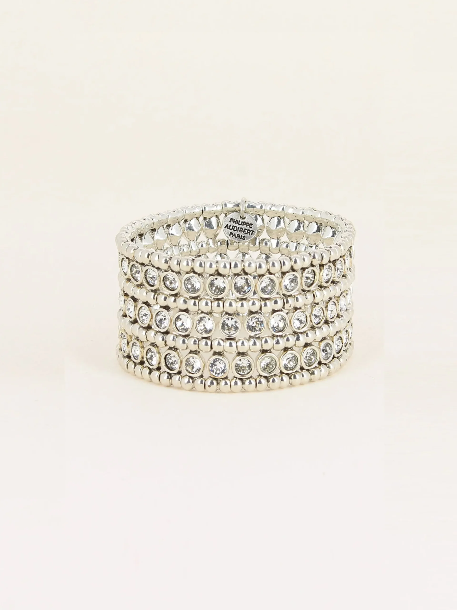 Manchette Élastique Retro Alsea Strass Ronds, En Étain Plaqué Argent Et Orné De Cristaux Swarovski
