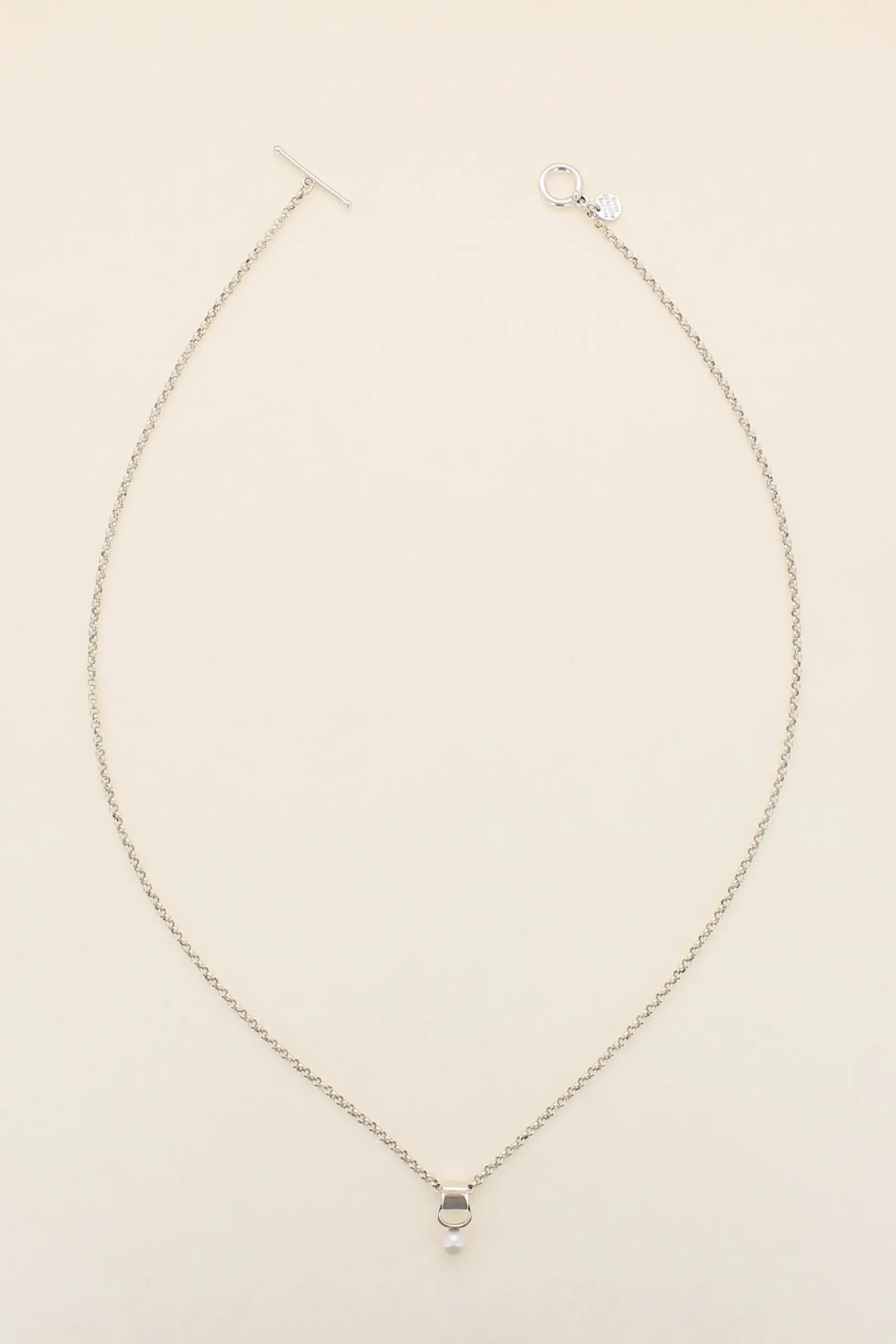 Sautoir Liana En Laiton Plaqué À L’Argent, Ornée D’Une Perle Naturelle